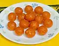 India | This is a dessert made with milk, cheese solids, and flour. It is deep-fried and soaked in sugar water flavored with green cardamom, saffron, roses. |