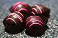 France | A type of chocolate confectionery, traditionally made with a chocolate ganache centre coated in chocolate, icing sugar, cocoa powder or chopped toasted nuts (typically hazelnuts, almonds or coconut), usually in a spherical, conical, or curved shape. Other fillings may replace the ganache. |