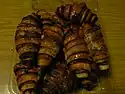 A cured meat prepared from a pig, bacon is prepared from several different cuts of meat. | |