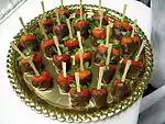 This is a list of strawberry dishes, foods and beverages, which use strawberry as a primary ingredient. Several desserts use strawberries as a main ingredient, and strawberries are also used as a topping on some foods, such as French toast, waffles and pastries.