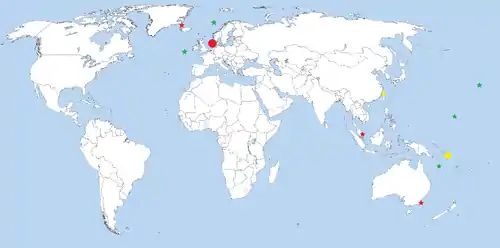 | HMAS Australia | 12 April 1924[40] | Off Sydney Heads[41] | At a depth of 1,332 feet (406 m)[42] | Various artifacts, including a propeller at the Australian War Memorial[43] | ![]() |