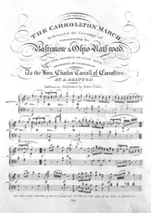 The earliest known train songs date to two years before the first public railway began operating in the United States. "The Carrollton March", copyrighted July 1, 1828, was composed by Arthur Clifton to commemorate the groundbreaking of the Baltimore & Ohio Railroad. Another song written for the occasion, "Rail Road March" by Charles Meineke, was copyrighted two days after Clifton's, one day before the July 4 ceremonies. The number of train songs that have appeared since then is impossible to determine, not only because of the difficulties in documenting the songs but also in defining the genre.[1]
