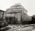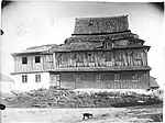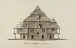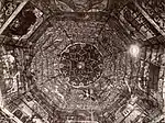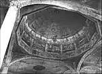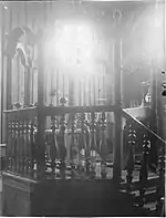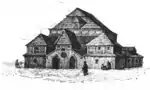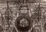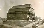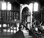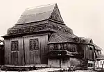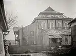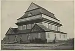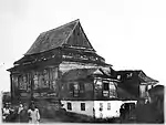 1770[15] - 1913[20] | The layered, pitched roof visible in surviving exterior photographs conceals a series of massive trusses from which the great dome was suspended.[21] The roof, which features three well-defined stages, was considered one of the most architecturally complex and interesting of wooden synagogue roofs.[22] The synagogue was enlarged in the nineteenth century by the addition of one story extensions on each side for the use of the women of the community.[23] | ![]() |