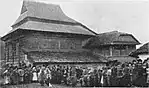 | Mynkivtsi | Ukraine, Khmelnytskyi | commons | 1787 - 1941 | The main hall was square. The walls consisted of horizontal wooden beams, which were covered with boards on the outside. The roof was two stories. Inside the hall were multi-colored paintings. In the course of time, disorderly additions were built around the main hall, some of them made of large stones and some of wood. | ![]() ![]() |