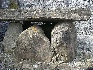 Bone and carbon material from Listoghil was carbon dated to approximately 3500 BC.[3] The human bones found there were a mixture of cremated, and un-cremated bones; the older, smaller tombs around it generally contain burnt bones. Extensive burning took place on the area of the site before the chamber was erected.