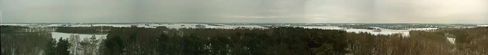 The summit is located in the middle of the forest, so the best views are from the edge of the forest during the ascent and from the 25 m high observation tower, which was built in October 2008 at the summit. In clear conditions you can see the Hamburg TV tower and Köhlbrand Bridge on the horizon. In addition, there are good views over the geest all around the area.