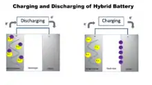 V2O5 is used because of its high specific capacity, high thermal stability, and high structural flexibility with lithium.[3] Up to three moles of lithium ions can be added into the V2O5 lattice to create different structures.[4] The structures created give the hybrid a long battery life. However, the intercalation capacity depends on the moderate electrical conductivity and low diffusion coefficient of the lithium ions in the vanadium oxide matrix.[5]