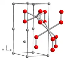 The structure of solid Li2O2 has been determined by X-ray crystallography and density functional theory. The solid features an eclipsed "ethane-like" Li6O2 subunits with an O-O distance of around 1.5 Å.[6]