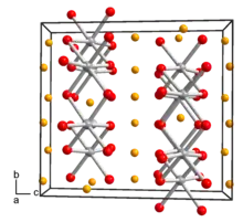 a = 0.505 nm, b = 0.876 nm, c = 0.968 nm α = 90°°, β = 100°°, γ = 90°° | |