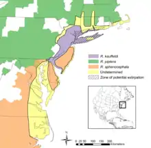 | Known (purple) and potential (yellow) range of L. kauffeldi | |