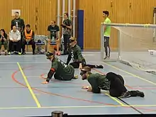 ![]() Lithuania men's goalball team ready to defend against Australia at the Goalball World Championships, Malmö, Sweden (2018). | |