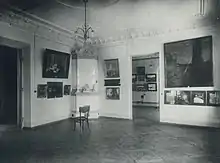 By 1912, the society had amassed a collection of about 400 works by professional artists and about 1,000 works by folk artists. It also safeguarded works by Mikalojus Konstantinas Čiurlionis (died in 1911) and was instrumental in preserving them.[27] The society organized his posthumous solo exhibition which displayed 265 of his works in Vilnius, Saint Petersburg, and Moscow.[13] It also organized a permanent exhibition in Vilnius which was open from 1913 to the end of 1914.[29] During World War I, the collections were evacuated to Moscow. After the Soviet–Lithuanian Peace Treaty in 1920, the works were returned to Lithuania and were deposited with the M. K. Čiurlionis Gallery (now the M. K. Čiurlionis National Art Museum).[27]