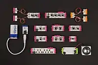 littleBits is a New York City-based startup that makes an open source library of modular electronics (open-source electronics), which snap together with small magnets for prototyping and learning.[1][2] The company's goal is to democratize hardware the way software and printing have been democratized.[3] The littleBits mission is to "put the power of electronics in the hands of everyone, and to break down complex technologies so that anyone can build, prototype, and invent."[4] littleBits units are available in more than 70 countries and used in more than 2,000 schools.[5] The company was named to CNN's 10 Startups to Watch for 2013.[6]