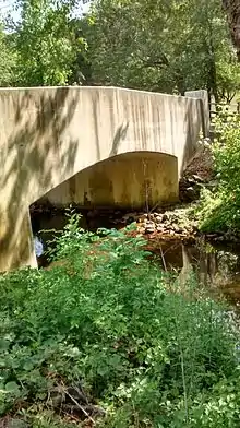 Several bridges have been built across Little Darby Creek. A masonry arch bridge with a length of 24 feet (7.3 m) carries Darby Paoli Road over the creek and was built in 1840.[8]