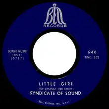 "Little Girl" is a popular song recorded by the California group the Syndicate of Sound, and written by Don Baskin and Bob Gonzalez of the band. It reached the US national pop charts in June 1966, peaking at #5 on Cash Box and #8 on Billboard.