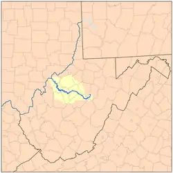 The Little Kanawha River is a tributary of the Ohio River, 169 mi (269 km) long,[2] in western West Virginia in the United States. Via the Ohio, it is part of the watershed of the Mississippi River, draining an area of 2,320 mi² (6,009 km²)[3] on the unglaciated portion of the Allegheny Plateau. It served as an important commercial water route in the early history of West Virginia, particularly in the logging and petroleum industries.[2][4]