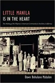 Little Manila Is in the Heart: The Making of the Filipina/o American Community in Stockton, California[1] (Duke University Press, 2013) by Dawn Bohulano Mabalon[2] is a book with three parts that depict the formation of Filipina/o American identities and community in the Little Manila in Stockton, California during the twentieth century. The book touches on issues including immigration, colonialism, race, gender, labor, and activism. Bohulano Mabalon draws on rich oral histories as well as historical archives such as the National Pinoy Archives and Filipino American National Historical Society to provide an analysis on Filipina/o experience. The book won the honorable mention for the Frederick Jackson Turner Award by the Organization of American Historians in 2014.