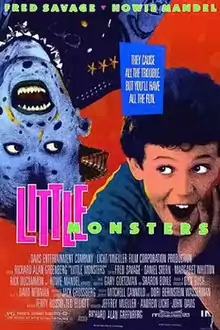Little Monsters is a 1989 American comedy film starring Fred Savage and Howie Mandel and directed by Richard Alan Greenberg.[2][3] It tells the story of a boy who befriends a real-life "monster under the bed" and discovers a secret world of monsters who sneak into children's bedrooms at night to pull pranks on them.[4][5] Although the film failed financially, receiving a limited theatrical release due to Vestron’s bankruptcy, it obtained a cult following on home video and is considered a requisite title in the gateway horror genre.