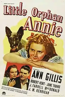 Little Orphan Annie is a 1938 American comedy film directed by Ben Holmes, and written by Budd Schulberg and Samuel Ornitz. It is based on the comic strip Little Orphan Annie by Harold Gray. The film stars Ann Gillis, Robert Kent, June Travis, J. Farrell MacDonald, and J.M. Kerrigan. The film was released on December 2, 1938, by Paramount Pictures.[1][2][3]