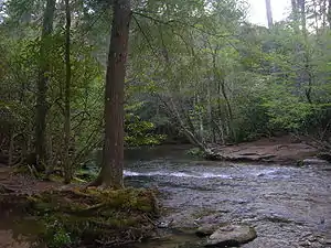 The Little Tennessee River and its immediate watershed comprise one of the richest archaeological areas in the southeastern United States, containing substantial indigenous habitation sites dating to as early as 7,500 B.C.[9] Cyrus Thomas, who conducted a survey in the 1880s of earthwork mounds in the area for the Smithsonian Institution, wrote that the Little Tennessee River was "undoubtedly the most interesting archaeological section in the entire Appalachian district."[10]