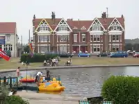 The town's status as both a port and a holiday resort led to economic success in the nineteenth century, with a railway line and a cross-channel ferry to Honfleur in France being introduced.[6] The population of the town grew tenfold over the century, from 584 in 1801 to 5,954 in 1901.[4] Littlehampton remained as a holiday resort in the twentieth century, becoming known as 'The Children's Paradise' in the 1920s.
