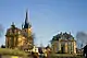 The Baroque Pfarrkirche St. Wenzeslaus in Litzendorf was built between 1715 and 1718 by master builder Johann Dientzenhofer. It is built from shiny, gold-coloured iron-bearing sandstone blocks and can be seen far from the community.