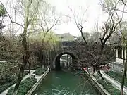 The original temple dates back to the Southern Song dynasty (1127–1279).[4] It historically known as Tonghui Bridge (通惠桥) in the Yuan dynasty (1271–1368), Jinyun Bridge (锦云桥) in the Ming dynasty (1368–1644), and reverted to its former name of Liubu Bridge in the Qing dynasty (1644–1911).[4] The current bridge was rebuilt in 1984.[1] In July 2000, it has been designated as a municipal-level cultural heritage site by the Government of Hangzhou.