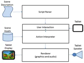 Programmer Glenn Axworthy created the Living Books engine, which made it possible for products to be written in Macromedia Director, then to edit the files into a "cross-platform, optimized playback format" that slow speed CD-ROMs could then play into limited memory computers at the appropriate speed "regardless of the speed of the CPU of the computer running the product".[4] The Living Books engine "served as the foundation for the entire product line" and the same underlying technology was still being used in 1998, just with better animation and interactive design.[37] The playback engine was designed to work across platforms without the animation needing to be redone.[8]