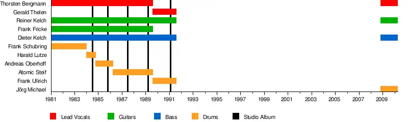 | Past members | Reiner Kelch Dieter Kelch Frank Fricke Frank Schubring Thorsten "Toto" Bergmann Harald Lutze Andreas Overhoff Atomic Steif Gerald Thelen Frank Ullrich |