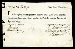 ![]() La Banque Royale: 100 livres Tournois (1720) | |