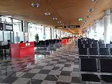 The first phase of the terminal expansion was opened for traffic in July 2021.[13] The capacity of the departures area was increased from 500 passengers per hour to 1,250 passengers per hour. A new 10,000 m2 (110,000 sq ft) extension was built to the west of the old terminal building.[14] It includes a large duty-free shop, a new business lounge, one new air bridge, as well as renovated food & beverage and promotional areas. There are 22 check-in desks and 5 long security lines available. A new baggage sorting area was also added and the baggage reclaim area was expanded and equipped with two long carousels.