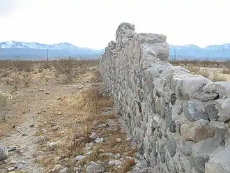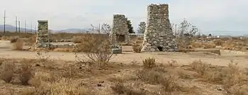 The Llano del Rio Colony settled in the southern edge of the Mojave Desert along Highway 138 near what is now 165th Street East, in the alluvial plain that spread out to the north from the San Gabriel Mountains. The colony took advantage of water from Big Rock Creek, an intermittent stream that flowed from the San Gabriel Mountains. Several structures were constructed using local granite boulders and lumber, including a hotel, meeting house, and water storage tank. There was also a small open aqueduct made of granite cobbles and cement. The remnants of the built features are still visible at the site.