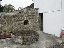 Inside Lo Wai. Water well next to the entrance tower of the village.