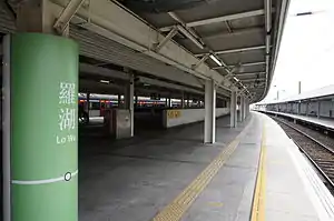 Lo Wu is the northern terminus of the East Rail line (Kowloon-Canton Railway) of Hong Kong, located in Lo Wu within the Closed Area on Hong Kong's northern frontier. The station serves as a primary checkpoint for rail passengers between Hong Kong and mainland China and vice versa, rather than serving a specific area. It is also the northernmost railway station in Hong Kong.