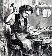The phrase originated as Cockney rhyming slang where "cobblers" refers to cobbler's awls which rhymes with "balls" (testicles), as in the exclamation "Balls!" for "Nonsense!".[1][2] The use of the rhyme allows a taboo word, in this case the vulgar exclamation "balls!", to be avoided.[3] The use of "cobblers" as a synonym for balls dates back to at least the 1930s.[4]