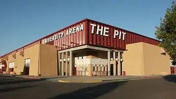 University Arena opened as the home venue of the Lobos on December 1, 1966. Because the playing surface is 37 feet below grade, students nicknamed the arena "The Pit," and the nickname stuck.[18] The team began the 1966–67 season ranked 6th in the country and rose to #5 before winning at #2 UTEP, the defending national champion and highest-ranked team New Mexico had ever beaten at that point.[19][20] The Lobos reached #3 with an 11–1 record but then lost four straight and fell out of the rankings. Despite a disappointing WAC campaign, they received a bid to the NIT. The Lobos beat Syracuse in the first round before losing to Rutgers, finishing the season 19–8 and ranked #18 in the UPI.[21] Daniels averaged 21.5 points and 11.6 rebounds a game, finishing his career with a still-team record 44 double-doubles,[22] and he became the first Lobo to be named as an All-American.[23] He was selected as the ninth pick overall in the 1967 NBA draft by the Cincinnati Royals, but he chose to play in the fledgling American Basketball Association (ABA), becoming one of its greatest all-time players. He was named the first ABA Rookie of the Year in 1968, ABA Most Valuable Player in 1969 and 1971, and he led the Indiana Pacers to three ABA championships.[24]