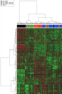 53. Perou CM, Sørlie T, Eisen MB, van de Rijn M, Jeffrey SS, Rees CA, et al. (August 2000). "Molecular portraits of human breast tumours". Nature. 406 (6797): 747–752. Bibcode:2000Natur.406..747P. doi:10.1038/35021093. PMID 10963602. S2CID 1280204.