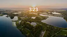 Windows NT has offered the ability for users to "lock" their computers by displaying a login window, which requires the active user's password to be entered to re-gain access to the system. Since Windows XP, the lock function has also been bound to the keyboard shortcut ⊞ Win+L.[18] On Windows 8, the lock screen was re-designed to closer resemble those used by mobile operating systems; users can choose a distinct wallpaper for use on the lock screen, which now also displays a clock, calendar events, and notifications from other apps. The screen can be dragged upwards with a mouse or touchscreen to unlock the device.[19] Windows 10 maintains this design, whilst adding the ability to use the Cortana voice assistant from the lock screen, and support for slide shows, and the "Windows Spotlight" service to retrieve daily wallpapers and optionally receive advertising and suggestions related to the wallpaper.[20][21]