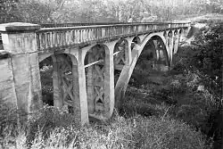 - 1x90 feet (27 m) reinforced concrete arch supporting 2x13 feet (4.0 m) and 2x10 feet (3.0 m) reinforced concrete spandrel arches, common concrete piers