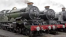 The last engine of GWR design built by British Railways was 1600 class No 1669 in May 1955.[28] However, as the railway preservation movement grew, and many types of locomotive were preserved, some people conceived the idea of reconstructing locomotives of classes that had not survived - even in scrapyards - long enough to be preserved. In the early 1970s, the Great Western Society acquired 'Hall' class No 4942 Maindy Hall, in order use it as a basis for reconstructing a 'Saint' class locomotive,[29] the last of which had been scrapped in 1953.[30] More recently, a number of other GWR engine classes have been or are being reconstructed, often taking advantage of the strong standardisation of the Swindon designs to use spare parts from other types.[31]