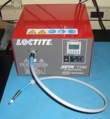 Loctite is an American [1] brand of adhesives, sealants, surface treatments, and other industrial chemicals that include acrylic, anaerobic, cyanoacrylate, epoxy, hot melt, silicone, urethane, and UV/light curing technologies. Loctite products are sold globally and are used in a variety of industrial and hobbyist applications.