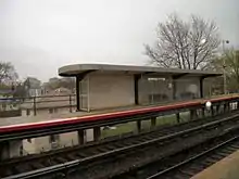 Locust Manor is a station on the Long Island Rail Road's Atlantic Branch in the Locust Manor neighborhood of Queens, New York City. The station is located at Farmers Boulevard and Bedell Street and is 14.0 miles (22.5 km) from Penn Station in Midtown Manhattan. The stop serves the Rochdale, Queens section and its Rochdale Village apartment complex, and was also the stop for the racecourse on which Rochdale Village was erected, Jamaica Race Course. Today it contains fiberglass populuxe designed shelters on high-level platforms.