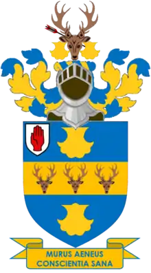 Between two Escallops Or a Buck's Head cabossed transfixed with an Arrow bendwise point to the sinister all proper