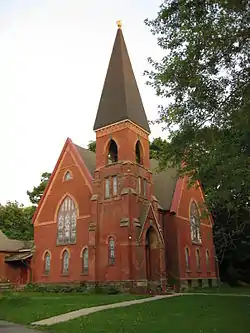Lodi Methodist Church is a historic Methodist church located at Lodi in Seneca County, New York. It was constructed in 1880 and it consists of a main block with four steeply pitched gables, a corner bell tower, and a large single story rear wing. It is built of brick with a coursed stone foundation and water table. It was designed by noted church architect Warren H. Hayes (1847–1899).[2]
