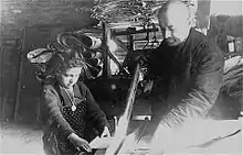 Directly responsible to the Nazi Amtsleiter Hans Biebow, Rumkowski adopted an autocratic style of leadership in order to transform the ghetto into an industrial base manufacturing war supplies.[23] Convinced that Jewish productivity would ensure survival, he forced the population to work 12-hour days despite abysmal conditions and the lack of calories and protein;[22] producing uniforms, garments, wood and metalwork, and electrical equipment for the German military. By 1943, some 95 percent of the adult population was employed in 117 workshops, which – Rumkowski once boasted to the mayor of Łódź – were a "gold mine." It was possibly because of this productivity that the Łódź Ghetto managed to survive long after all the other ghettos in occupied Poland were liquidated. Rumkowski systematically singled out for expulsion his political opponents, or anyone who might have had the capacity to lead a resistance to the Nazis. Conditions were harsh and the population was entirely dependent on the Germans. Typical intake, made available, averaged between 700 and 900 calories per day, about half the calories required for survival.[24] People affiliated with Rumkowski received disproportionately larger deliveries of food, medicine, and other rationed necessities. Everywhere else starvation was rampant and diseases like tuberculosis widespread, fueling dissatisfaction with Rumkowski's administration, which led to a series of strikes in the factories. In most instances, Rumkowski relied on the Jewish police to quell the discontented workers, although at least in one instance, the German Order Police was asked to intervene. Strikes usually erupted over the reduction of food rations.[23]