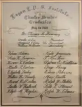Construction on the Logan Institute began in 1928 as the first institute of religion in the state of Utah.[1] When the building was completed, it was dedicated by LDS Church president Heber J. Grant on Easter Sunday, 31 March 1929.[3] When it opened, there was a total enrollment of 114 students and offered two classes: Bible Literature and Moral Philosophy. The institute's first class graduated on 26 May 1935 and had 21 students.[5] Thomas C. Romney was the first institute director and the only instructor until Milton R. Hunter was hired in 1936.