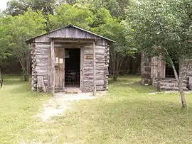 Vandeveer was a leader in presenting the petition to the legislature in 1852 to establish Burnet County and was instrumental in having the town of Burnet named the county seat. He was appointed postmaster at Burnet by Samuel D. Hubbard, US Postmaster General, August, 1852.[3] In 1853, he opened the first Burnet school, known as the Collegiate School, hiring as teacher William H. Dixon, an Oxford University graduate. A number of subjects, including French, Latin, geography, history, philosophy, mathematics, and elocution, were taught in the one-room school pictured at right.