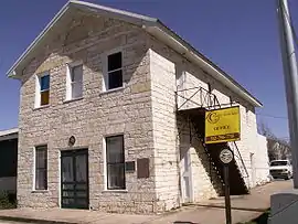 In 1854, Vandeveer and an associate built the first substantial building in the town, a two-story stone building for use as a mercantile building and Masonic Lodge meeting place. It is still in use today for that purpose. A rock house was also built for his family and his father, William, and was located east of Hamilton Creek. His daughter later lived there and the home was continuously occupied for many years. It has since been restored and moved to the grounds of Fort Croghan.