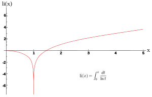 Here, ln denotes the natural logarithm. The function 1/(ln t) has a singularity at t = 1, and the integral for x > 1 is interpreted as a Cauchy principal value,