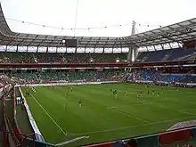 RZD Arena (Russian: «РЖД Арена») is a football stadium in Moscow, Russia. Formerly known as Lokomotiv Stadium, it is the home stadium of Lokomotiv Moscow and was the home ground of the Russian national team for the 2010 FIFA World Cup qualification matches. The stadium was reconstructed in 2002 and holds 27,084 people, all seated. The reconstruction of the stadium was funded by the Russian Transportation Ministry at a cost of $150–170 million.